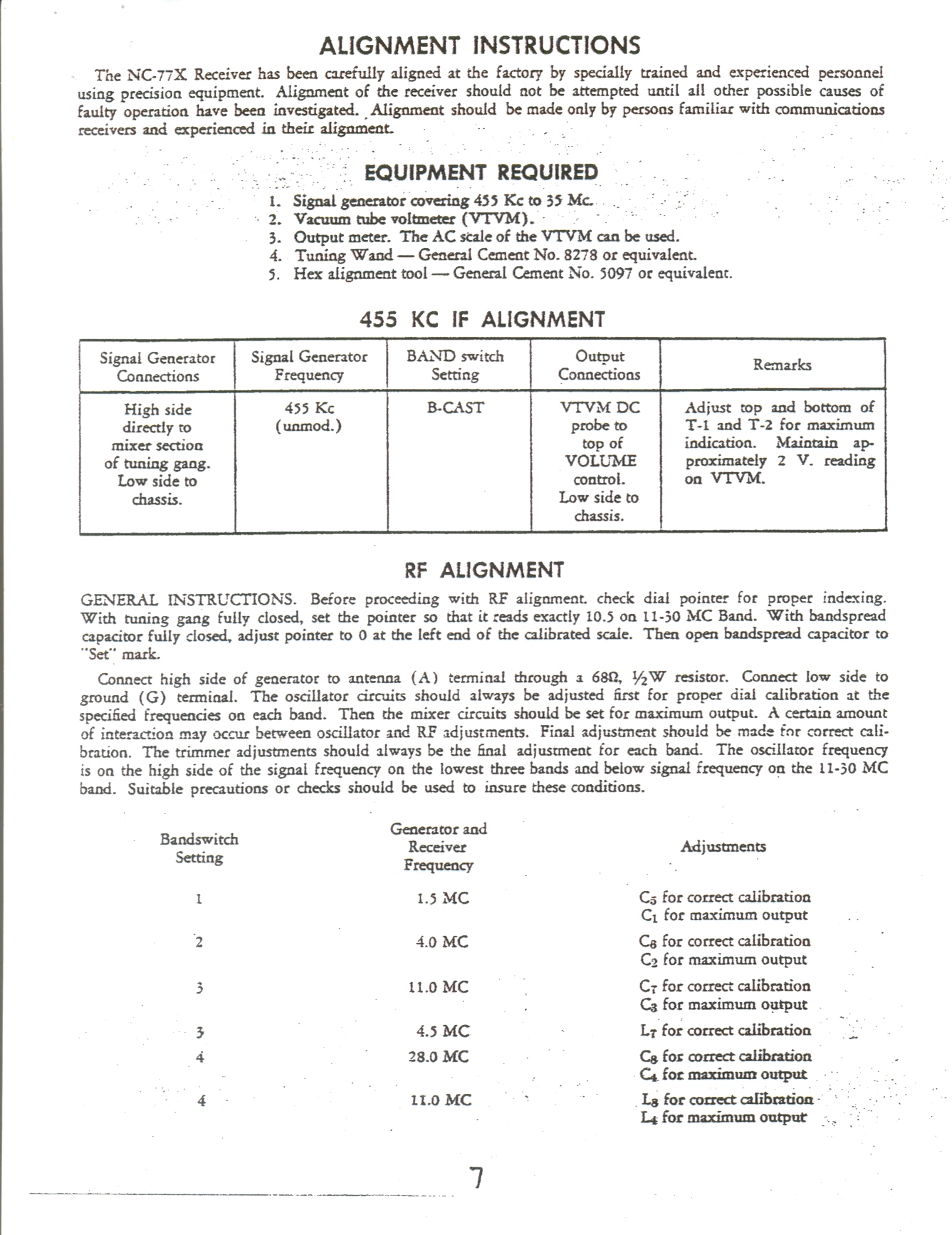 National NC-77X Alignment instructions