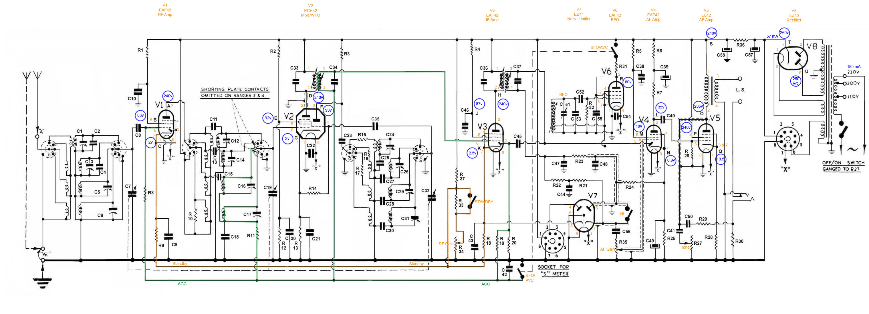 Circuit diagram with test points, very helpful for alignment or fault finding.