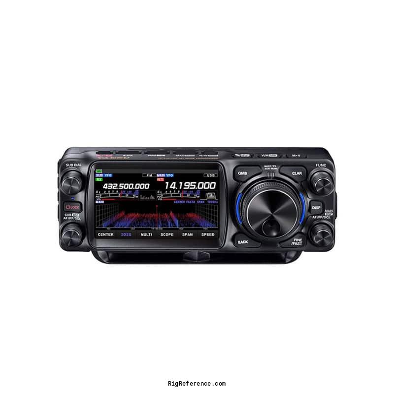 4.3" color touch TFT with switchable display modes. 3DSS band-scope. Two independent receivers. Two speakers. 32-bit IF DSP. Wires-X. USB ports for audio I/O and CAT operation. S-DX. AMS. APRS. Micro SD card slot. Optional ATU that attaches to the back. Optional cooling fan for prolonged transmissions like FT8 and similar. Optional 100 W dockable PA. Optional Bluetooth.